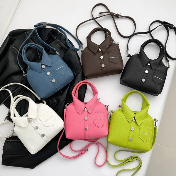Fresh, bold, and effortlessly chic — the Collarina Tote redefines playful sophistication. With its unique shirt-inspired design complete with a folded collar, pocket detail, and glossy button accents, this piece blends fashion and fun in perfect harmony. The textured leather-like finish and detachable crossbody strap make it as practical as it is eye-catching.
