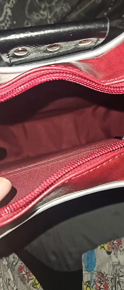 The Jam Bag opens wide to hold your daily essentials with ease, featuring a smooth zipper and spacious interior. Detailed with realistic guitar strings, polished studs, and glossy faux leather for a bold rock-inspired look. Finished with a sturdy adjustable strap and durable hardware for comfortable, everyday wear.