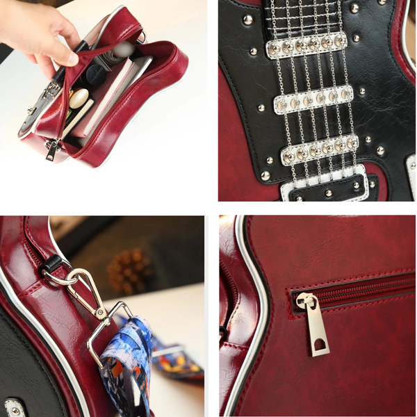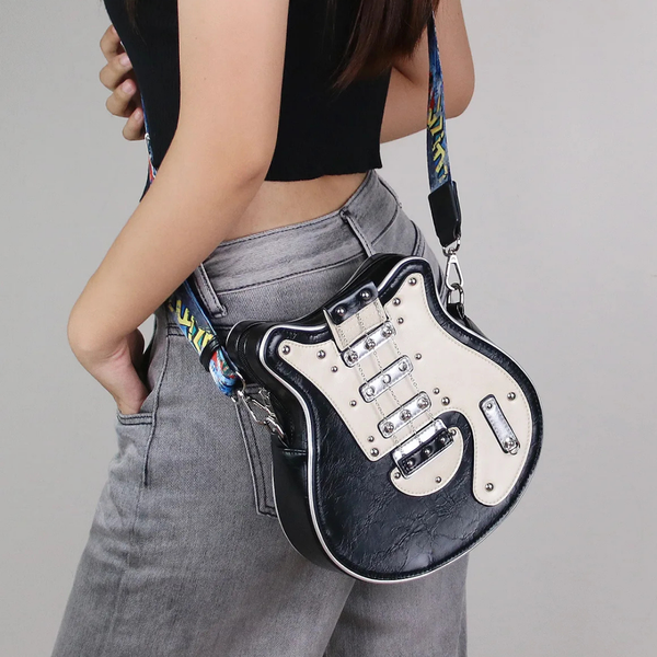 Inspired by classic electric guitars, the Jam Bag features realistic string detailing, bold color contrasts, and a structured silhouette that stands out wherever you go. Itβs more than a bag β itβs a fashion performance.