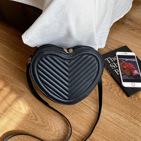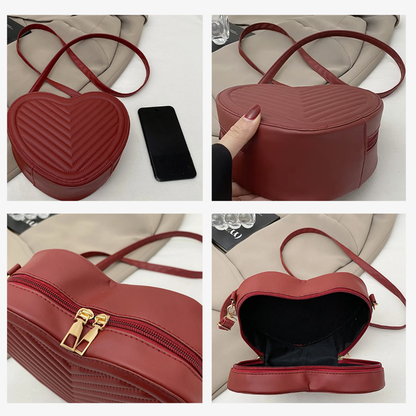 Finished with smooth faux leather, precise stitching,across its striking heart-shaped silhouette. Its structured sides and refined zipper closure keep the shape polished while offering secure, easy access to your essentials. Inside, the compact yet well-organized interior comfortably fits your daily necessities, making it as practical as it is charming.