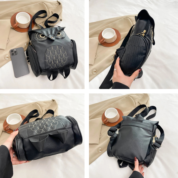 Moonlight Owl backpack features a sleek faux leather finish with detailed stitching and charming embroidered accents. Compact yet spacious, it fits your daily essentials while staying lightweight and comfortable. Adjustable straps and secure closures make it perfect for everyday use and casual outings.
