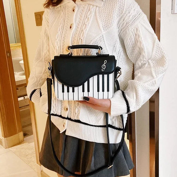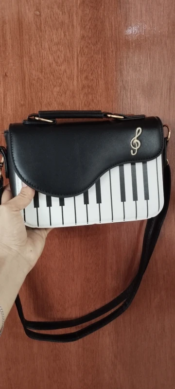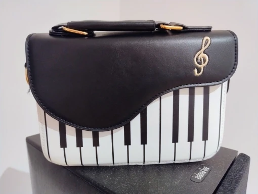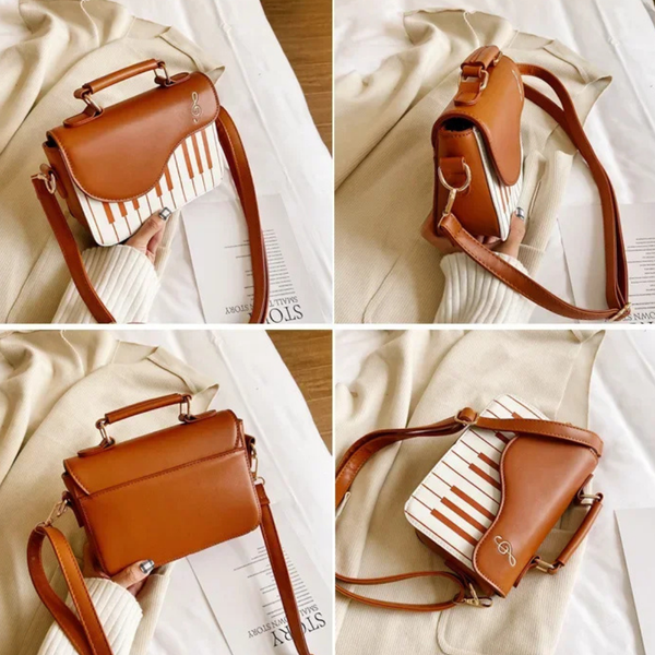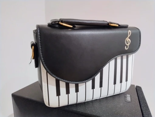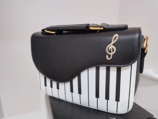 The Piano Mini combines playful musical design with everyday elegance, featuring a bold piano-key front panel and smooth faux leather finish. Its compact yet structured shape keeps your essentials neatly stored, while the secure flap and quality hardware add a polished touch. Designed with both a top handle and adjustable strap, this bag offers comfortable, versatile wear for casual outings, coffee dates, and stylish day-to-day looks.